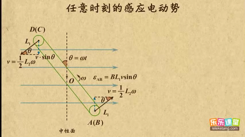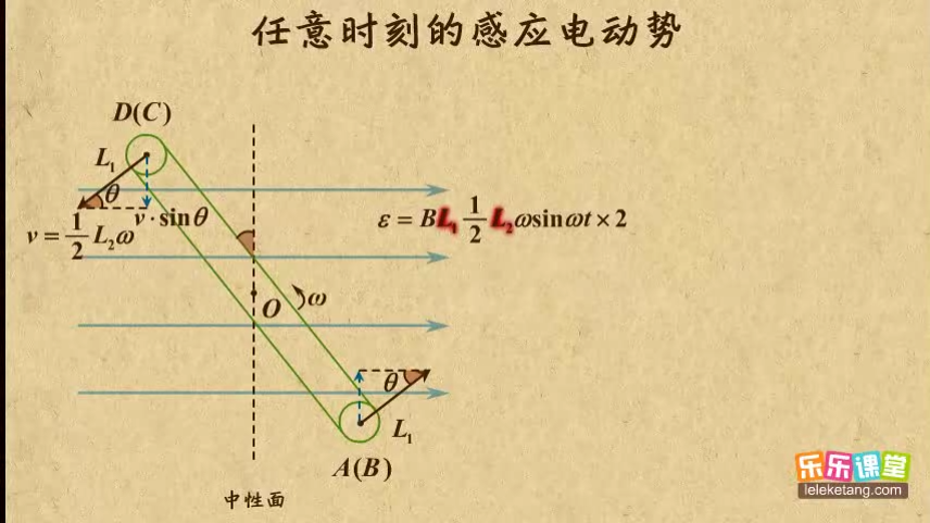 那么如果从中性面开始计时,经过时间,线圈与中心面的夹角,并且任意时刻AB边的速度都是,CD边也是。